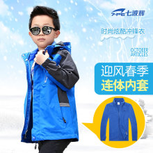 七波辉男童装2017秋冬款儿童户外保暖冲锋衣外套可拆卸两件套特价