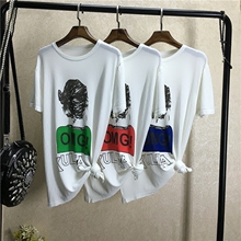 夏装2017韩版印花宽松大码冰丝针织t恤女短袖上衣女夏薄款体恤衫