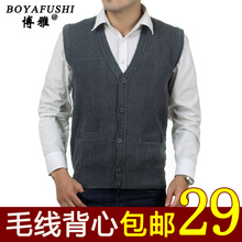冬季新款中年男士V领无袖马甲中老年人针织背心爸爸装修身坎肩男