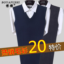 新款中年男V领无袖背心春秋薄款修身毛织背心爸爸中老年针织马甲