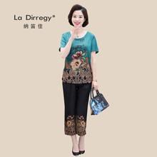 中老年服饰女装妈妈装夏装季短袖T恤+松紧七分裤子两件套装