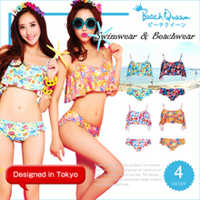 BeachQueen日本新款泳装钢托聚拢荷叶边显胸清新碎花连体泳衣
