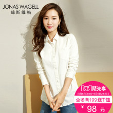 琼斯维格纯棉牛仔衬衫女长袖韩范宽松娃娃领衬衣2017春秋装白衬衫