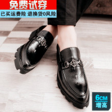 发型师皮鞋男尖头休闲鞋松糕韩版夜店内增高英伦风厚底青年潮皮鞋