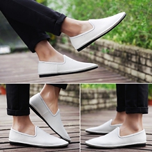 白色豆豆鞋男夏季真皮韩版百搭休闲发型师皮鞋一脚蹬懒人鞋男鞋潮