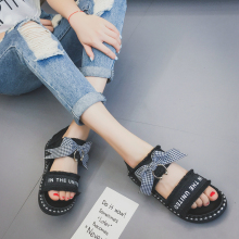 2017休闲新款蝴蝶结平底凉鞋软妹一字扣平底鞋女平跟罗马鞋女学院