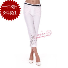 巧帛chaber春夏专柜正品141546#镂空绣花小脚七分裤