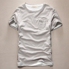 斜口袋圆领韩国男士t恤长袖新款纯色麻棉个性上衣宽松开衩衣服潮