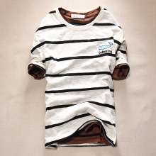 青春流行短袖男士t恤创意韩版潮男 修身型半袖男生男装体恤拼接款