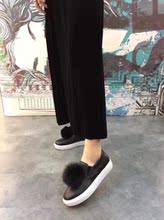 2017春冬新款 乐福鞋单鞋女毛球懒人鞋韩范厚底低帮鞋