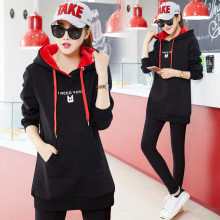 2017春装新款韩版大码女装卫衣三件套连帽休闲运动服套装女春秋潮