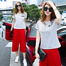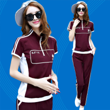 2017新款简约潮流夏季纯棉短袖九分裤长裤休闲运动服套装女两件套