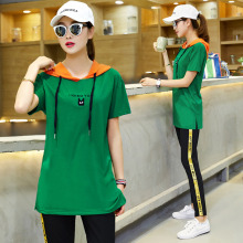 2017春夏新款韩版大码中长款T恤长裤休闲运动服套装女夏装两件套