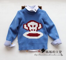 男中小童加厚羊毛衫儿童圆领套头毛衣2015秋冬新款童装大嘴猴