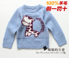 儿童圆领卡通羊毛衫男小中童肩开扣宝宝毛衣2016秋冬中童圆领毛衣