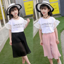 2017新款女童雪纺套装夏装夏季中大童装儿童短袖上衣阔腿裤两件套