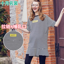纯棉外出哺乳衣夏季时尚款短袖孕妇装夏装上衣中长款喂奶衣连衣裙