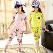 女童童装夏装2017新款儿童衣服两件套夏季运动短袖全棉中大童套装