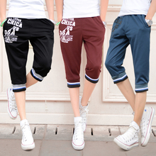 夏季七分裤韩版潮流修身7分裤男士短裤夏天薄款高中学生休闲裤男