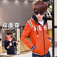 学生潮流春秋双面两面穿外套男青少年韩版帅气运动春季连帽卫衣男