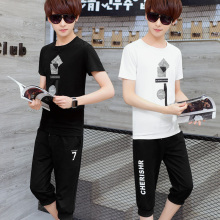 青少年夏季套装男两件套初中学生2017新款时尚夏装韩版潮短袖T恤
