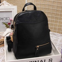 2016新款头层牛皮双肩包女韩版潮学院风真皮小熊图案休闲女士背包