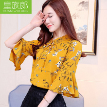 2017春秋冬装时尚新款百搭喇叭袖雪纺衫春季韩版打底衫女长袖t恤6