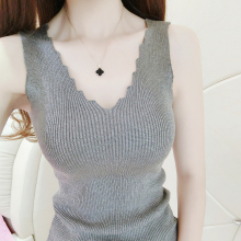 夏季新款韩版百搭波浪边V领针织背心女修身显瘦无袖打底衫上衣潮