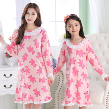 母女亲子睡裙 夏季薄款空调服 女童纯棉长袖家居服儿童宝宝中大童
