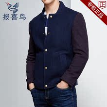 报喜鸟2016新款秋冬季男士拼接夹克衫针织立领羊毛茄克外套SV814