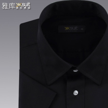 雅库夏季商务修身中年男士短袖衬衫 水晶扣纯色纯棉休闲衬衣包邮