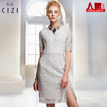 cizi新款时尚复古蕾丝连衣裙简约气质中长款高腰显瘦连衣裙女