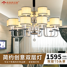 家家燕现代简约客厅吊灯铁艺别墅灯复式双层大吊灯新中式布罩灯饰