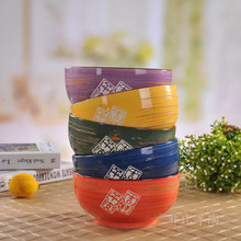 创意日式和风韩式 景德镇陶瓷碗 吉祥平安五彩碗 情侣碗 米饭碗