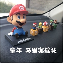 超级玛丽马里奥兄弟 可爱汽车摆件摇头公仔 车内饰品创意卡通玩具