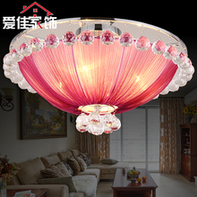 LED吸顶灯圆形布艺水晶灯卧室灯温馨欧式公主房间灯田园婚房灯具