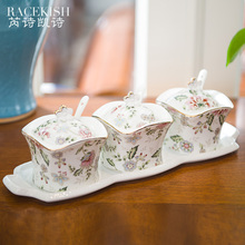 芮诗凯诗 欧式简约陶瓷调味罐三件套调料罐创意家居装饰厨房用品