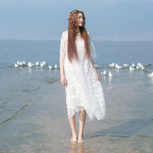 忆旧棉麻记2017春夏新品文艺复古绣花欧根纱仙女公主连衣裙沙滩女