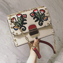 【南风】刺绣锁扣小方包女2017新款欧美时尚花朵单肩斜跨链条包夏