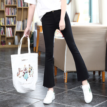 春夏季2017新款微喇牛仔裤高弹黑色显瘦修身喇叭裤女裤子九分裤