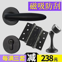 名门静音门锁室内卧室门锁黑色分体锁磁吸实木门门锁锁具三件套装