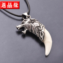 复古民族风狼牙吊坠项链男潮骨质辟邪真狗牙情侣手链学生钛钢饰品