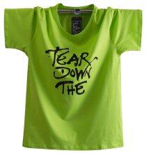 夏装潮胖子简单款休闲男士短袖T恤V领加肥加大码男装肥佬棉质t恤