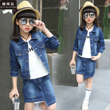 女童春装套装2017新款韩版潮衣牛仔套裙女童牛仔套装春装2017新款