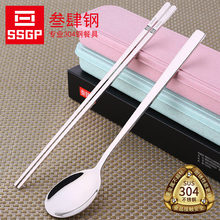 304不锈钢筷子勺子套装 实心扁筷长柄便携餐具学生成人儿童韩国