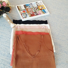 2017夏季花边吊带女蕾丝拼接针织V领小背心修身露背上衣打底衫
