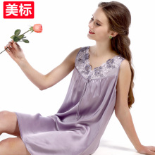 美标2017新款女士春夏季真丝无袖睡裙高贵桑蚕丝睡衣丝绸家居服秋