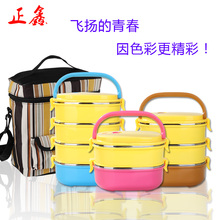 彩色彩虹304不锈钢保温饭盒4层 保温桶多层饭盒保温盒便当餐盒