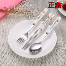 正鑫304不锈钢陶瓷便携餐具盒套装勺子筷子叉子 学生餐具三件套