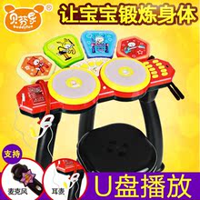 贝芬乐儿童爵士鼓宝宝架子鼓玩具 敲击音乐早教玩具带凳子麦克风